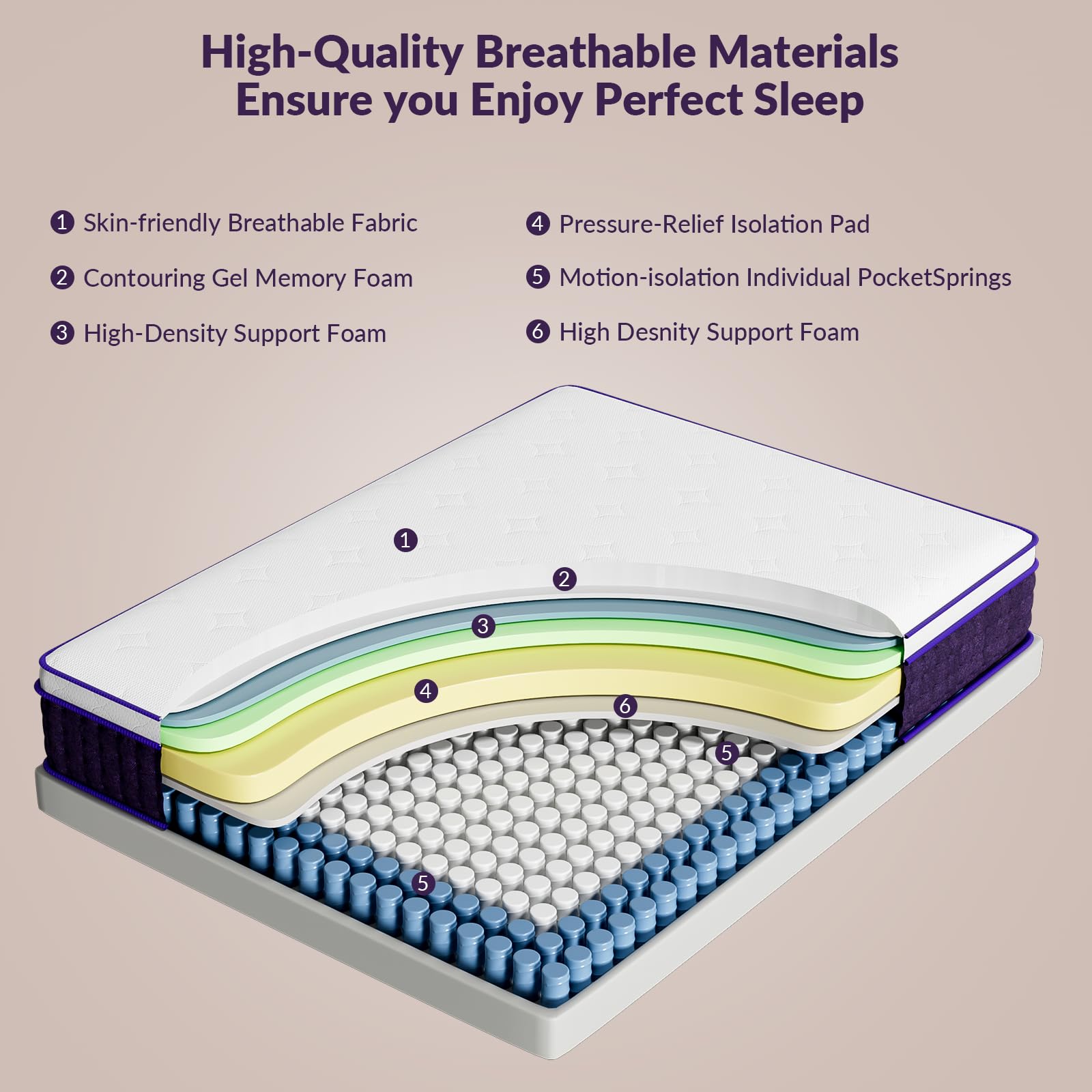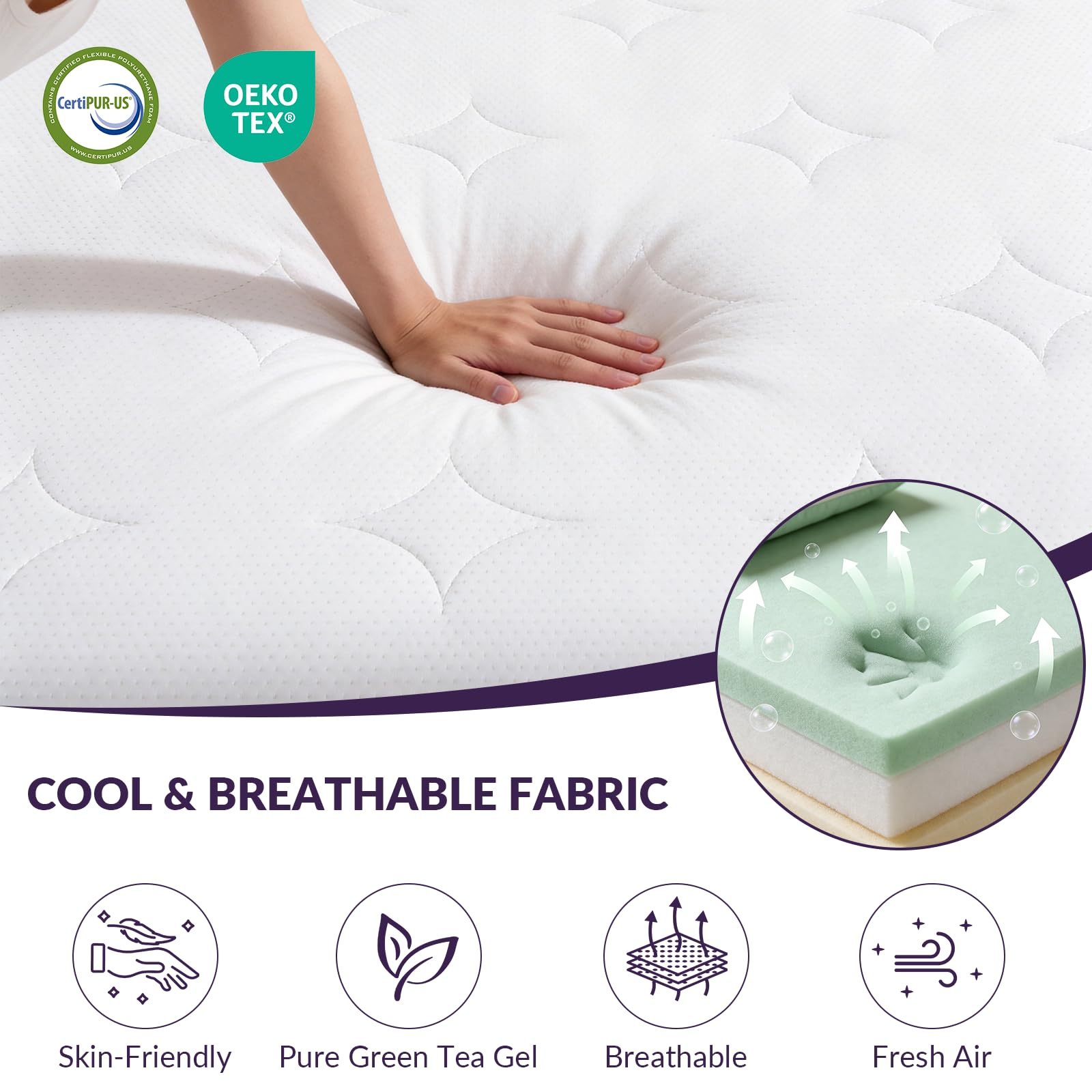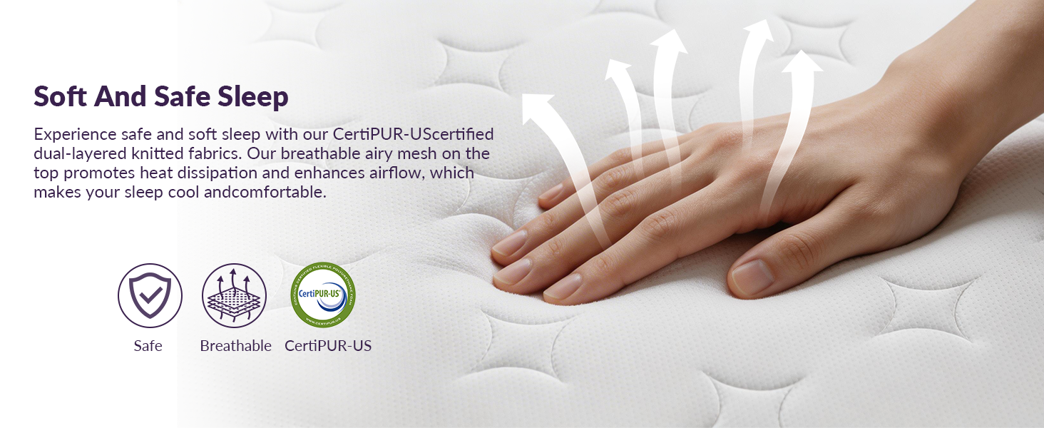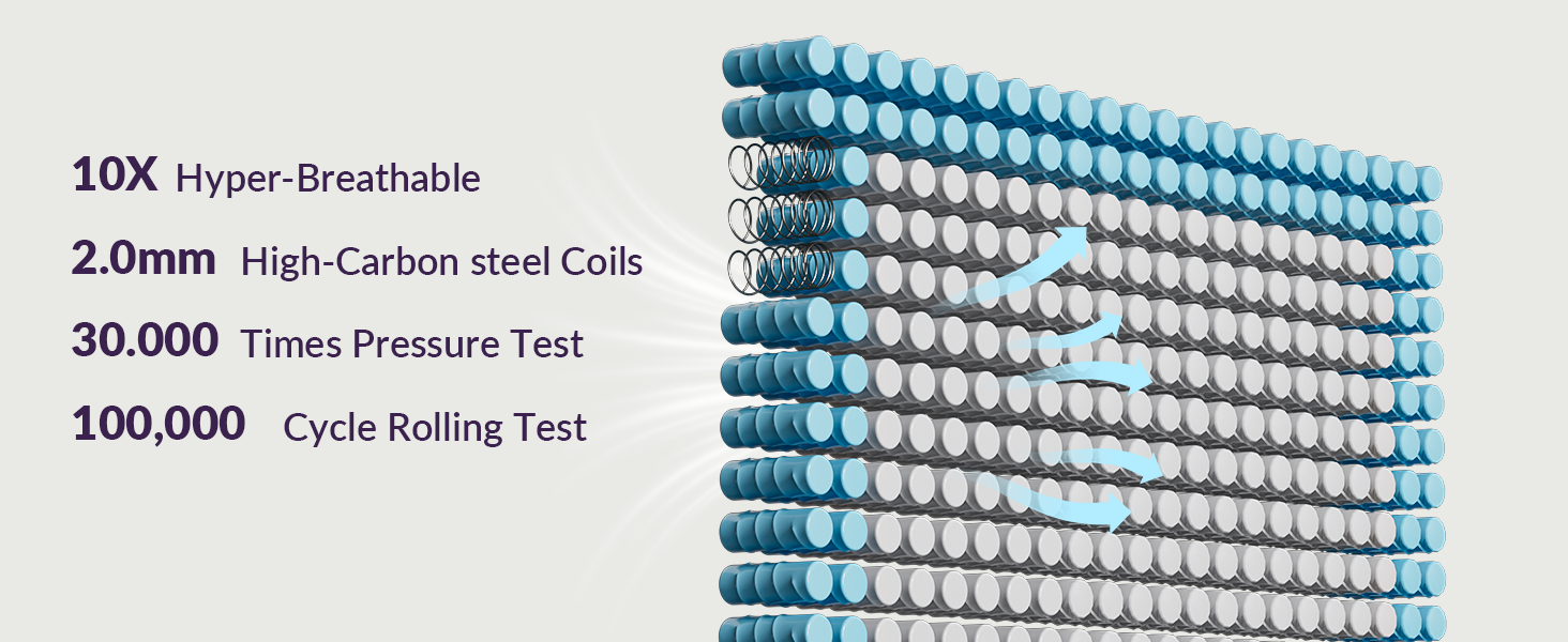 - 【Cooling & Breathable Comfort】– breathable knit fabric and ventilated pocket springs work together to maximize airflow, wick away moisture, and keep you comfortably cool all night. Safe for everyone, free from harmful substances and fiberglass, certified by CertiPUR-US and OEKO-TEX Standard 100.